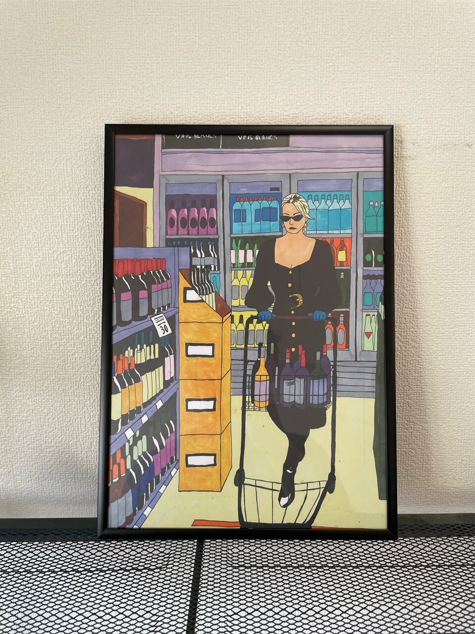 ファッションスナップでも有名なセレブ系インフルエンサーで歌手活動・女優業を営むキャロライン。彼女は近所のスーパーでワインを次々とカゴに入れていく。その手には感染予防のために装着された青いゴム手袋。青のアクセントが全身ブラックのコーディネートを際立たせる。